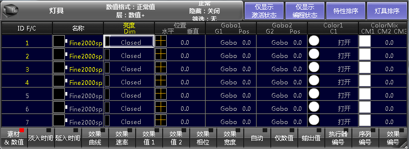 即可看到新添加的电脑灯及属性值。此时,屏幕应该如下图所示: