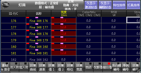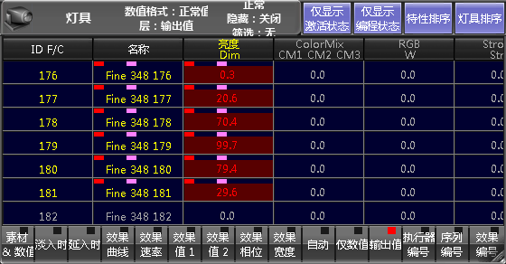 效果参数可以通过灯具窗口下方的按钮和转轮进行设置: