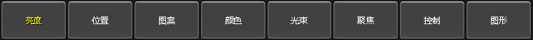 这代表了所有可用的属性类型,如果所选灯具并没有图案功能,则不会出现图案图标,另外,如果处于某个操作域中,则相应的,可见的属性类型类型会随之变化。 选定某些灯具时,该灯具可用的属性类型按钮的上方出现红色指示条。