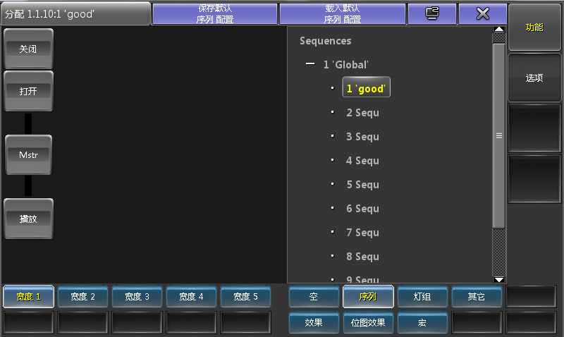 标题栏可以看出当前处于操作的执行器,即第一页执行器10,以及将被分配的对象,例如图示中的Squence 1'good'。