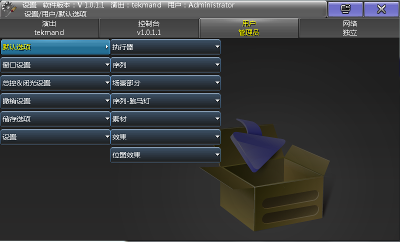 按Setup,在用户选项下按默认选项按钮,则可打开下图所示界面:(在此界面可以修改用户的默认设置。)