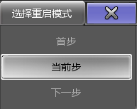 首步:重新启动执行器,总是回到第一个场景的位置 当前步:当执行器关闭时,重新启动序列回到当前场景的位置 下一步:当执行器关闭时,重新启动序列回到下一个场景的位置